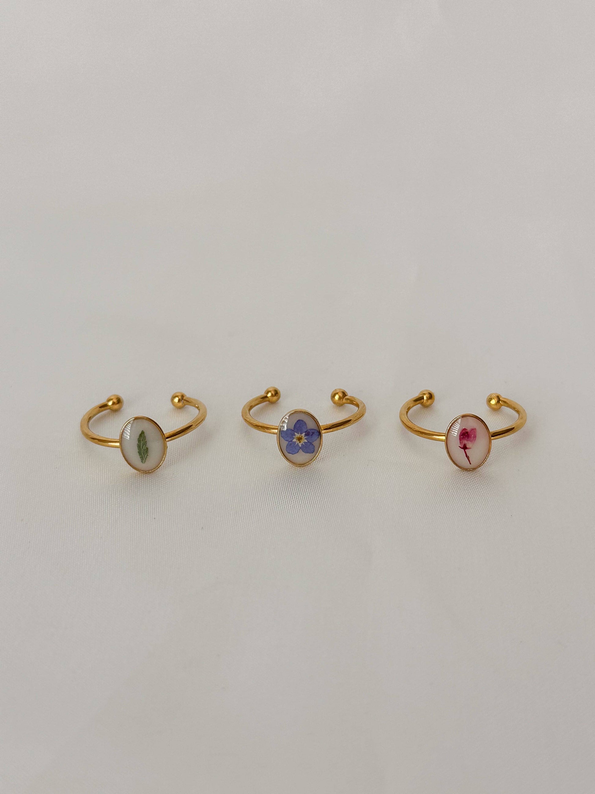 Dainty Pressed Flower Adjustable Ring (Oval)