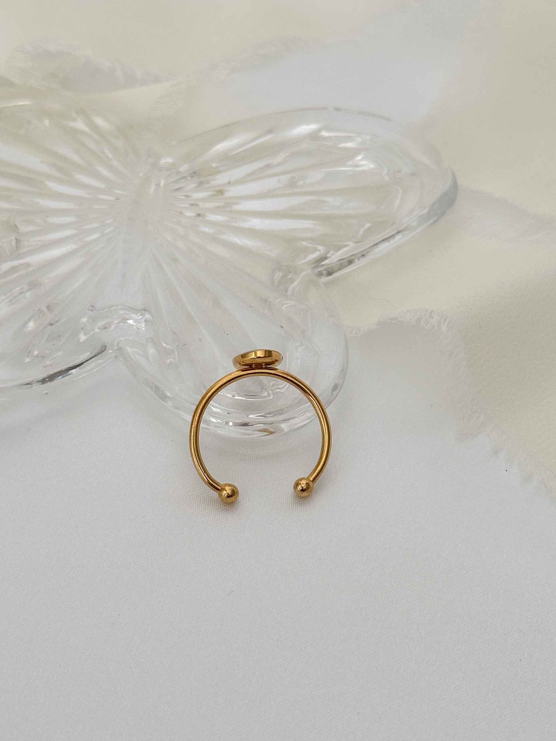 If you like dainty jewelry and even daintier pressed flowers, then this is the perfect ring for you! Each ring contains a single pressed flower preserved in resin, and features a gold-plated stainless steel adjustable ring band. Due to the adjustable size, we recommend this ring for sizes 4-9 (approximately). The gold-plated stainless steel is tarnish resistant and nickel free.